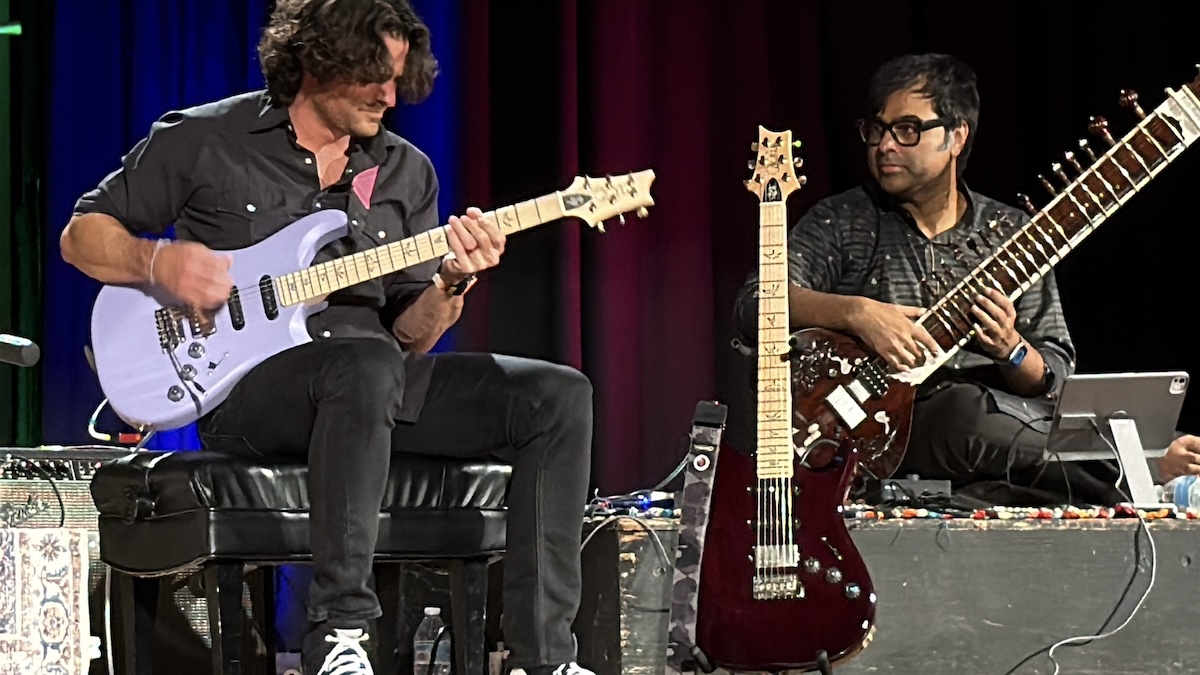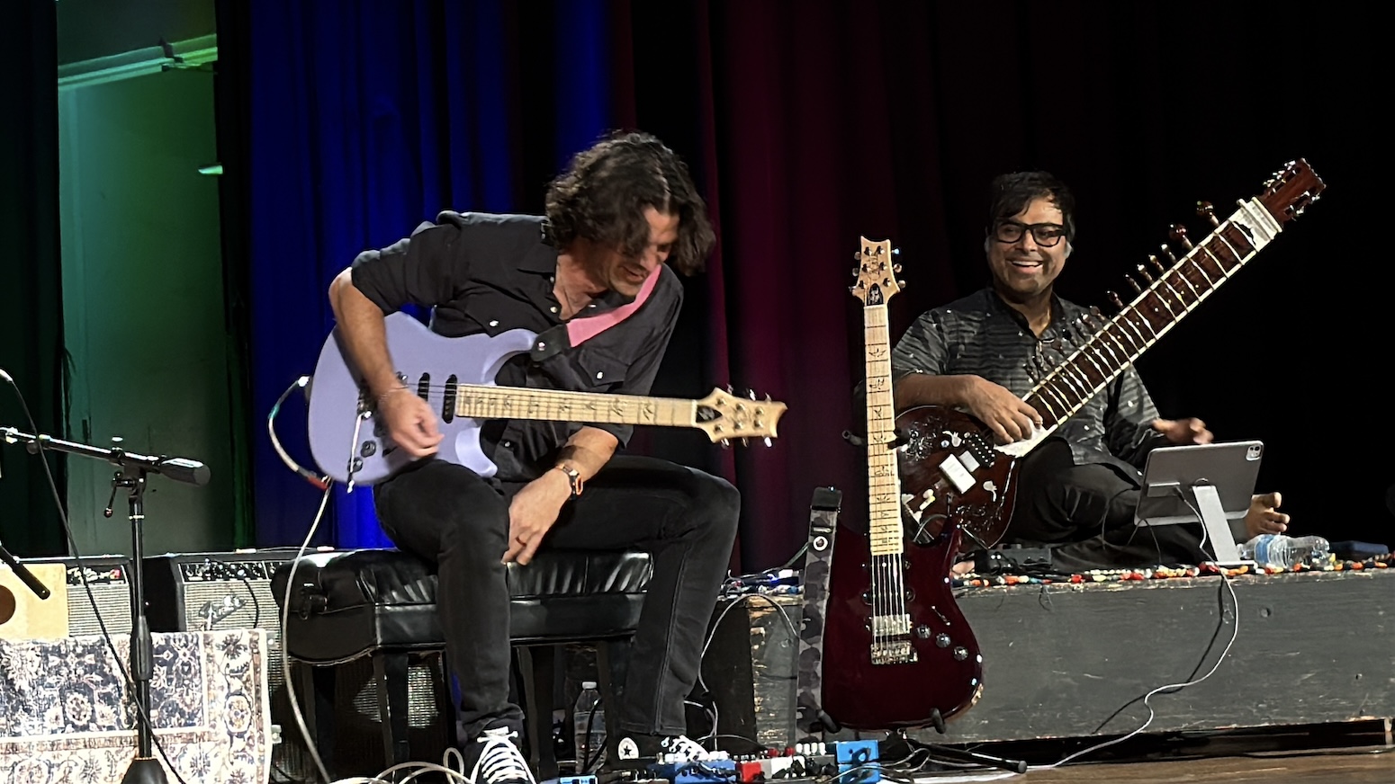 Purbayan Chatterjee and Mark Lettieri will be performing at a special artist residency in Washington, DC on April 13-15 hosted at MC Live Arts at Montgomery College (Takoma Park/Silver Spring campus). During this creative development period, the cross-cultural collaboration will refine and expand the work in an immersive rehearsal setting. The residency culminates in a public work-in-progress showing for the student and audience communities of greater Washington DC, where live audiences will experience the evolving performance and participate in an open dialogue about the project’s future vision and continued development.